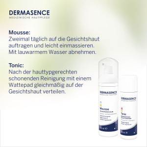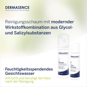Das DERMASENCE Reiseset passt in jede Reisetasche. Die Kombination aus Mousse und Tonic reinigt porentief, verfeinert das Hautbild und reguliert den pH-Wert.