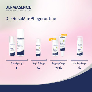 Pflegetipp: Als nachfolgende Pflege eignet sich die DERMASENCE RosaMin Getönte Tagespflege mit LSF 50 oder die DERMASENCE RosaMin Emulsion.