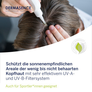 Anwendung: 20 – 30 Minuten vor der Sonnenexposition großzügig auf die Kopfhaut auftragen.