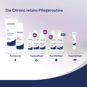 Pflegetipp: Zur intensivierten Feuchtigkeitsversorgung der Haut kann die Nachtpflege mit dem DERMASENCE Chrono retare Anti-Aging-Serum kombiniert werden. Ideal zur Vorbereitung der Haut auf Fruchtsäure-Peelings.