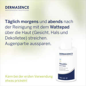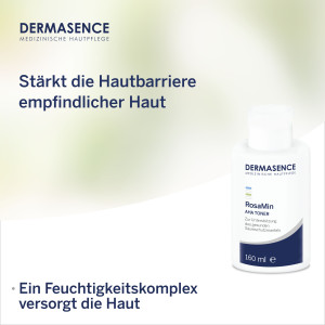 Der DERMASENCE RosaMin AHA Toner ist ein hautbarrierestärkendes Gesichtswasser, das den gesunden Säureschutzmantel unterstützt und die Haut mit dem Feuchtigkeitskomplex AquaxylTM versorgt. Das Gesichtswasser reinigt die Haut sanft und sorgt für verfeinerte Poren und ebenmäßiger wirkende Haut. Dermatologisch getestet, frei von Parfüm, Alkohol und Tensiden und vegan.